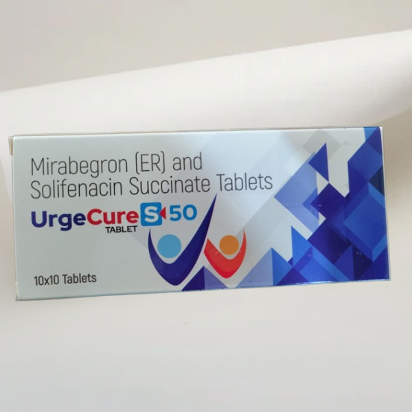 UrgeCure S 50 contains a combination of Mirabegron (Extended Release) and Solifenacin Succinate, formulated to ensure consistent quality and stability. This dual-ingredient tablet is manufactured under strict pharmaceutical standards to deliver uniform composition and dependable performance.